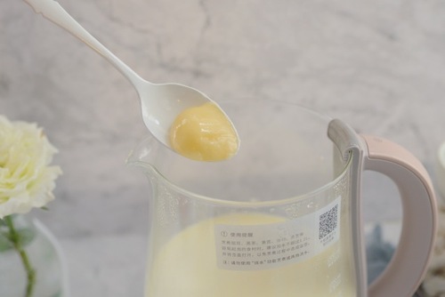 待养生壶自动断电,加入牛奶、蜂蜜即可。