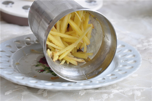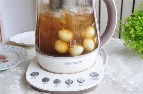 将切好的姜丝放入茶格,鹌鹑蛋放入壶中。