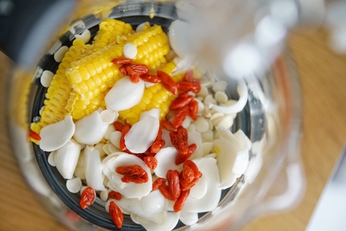 甜玉米粒 100g、百合 2朵、甜杏仁 1小把、枸杞 20粒