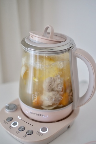 将所有食材放入养生壶中,加水至1200ml,启动养生汤模式。