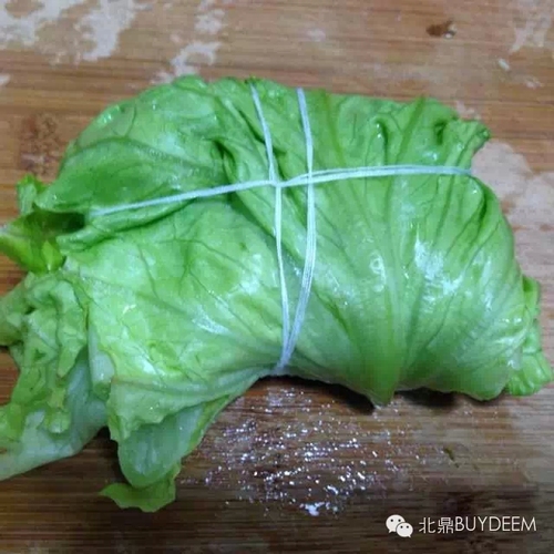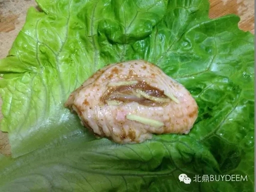 将腌好的鸡翅用大片的菜叶包起来。