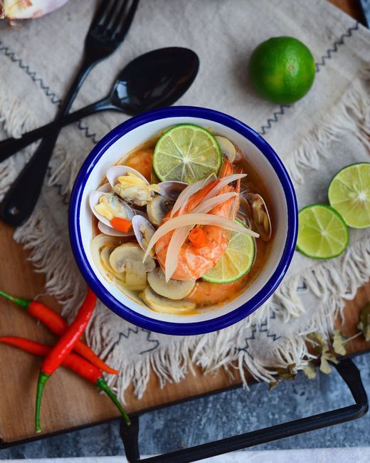 配方:冬阴功酱,草菇,小番茄,泰国青柠