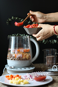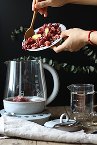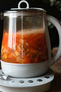 养生壶倒入1000ml水,先下牛肉焯熟。