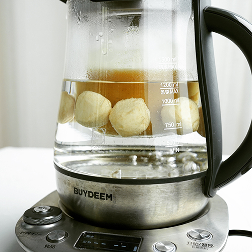 养生壶开启烧水模式,烧开1200ml水,将咖喱块放入炖盅内;