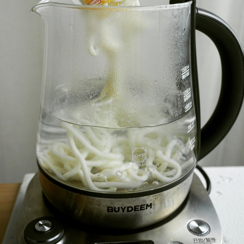 乌冬面放入养生壶开启烧水模式,3分钟烫熟;
