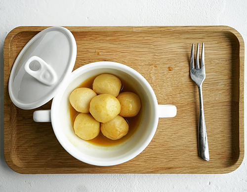 将烧开的水倒入200ml至炖盅内,融化咖喱块;