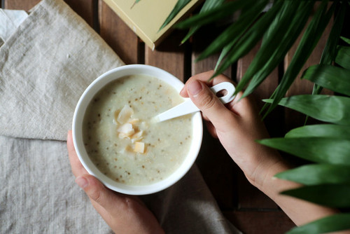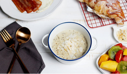 取一份燕麦片、小麦胚芽、椰子粉、奇亚籽混合包放入养生壶,加水至500ml,搅拌均匀。烹煮过程请打开盖子,以免溢壶。