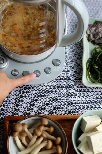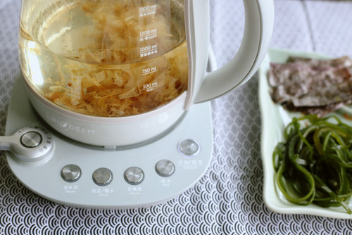 自动断电后捞出干海带,加入木鱼花,开启水果茶模式。