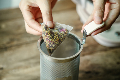 将洛神花、玫瑰花、金银花洗净放入养生壶中,桂花放入茶篮中。