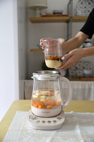 放入养生壶中加水至1000ml,将炖盅安装好。启动“粥品”程序,待自动断电后即可食用。