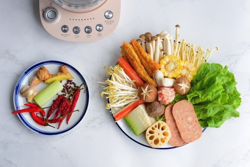 将不易熟的根茎类蔬菜及丸类丢进养生壶