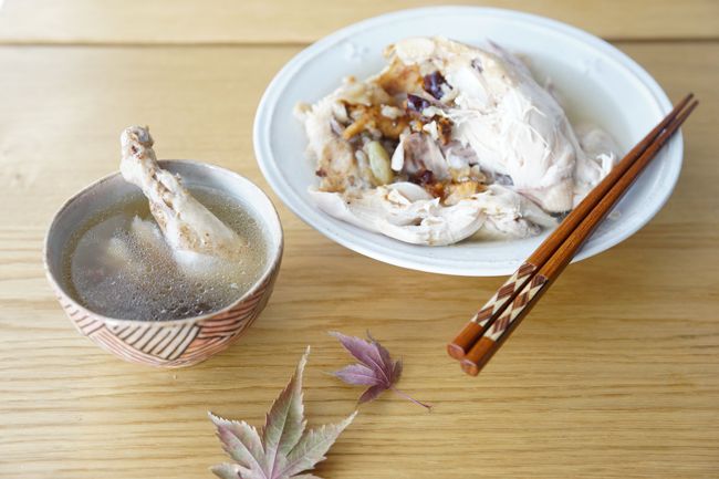 待养生壶自动断电,加入适量盐调味即可拿出整只鸡摆盘,盛出一碗暖暖美味的参鸡汤好好享用吧。