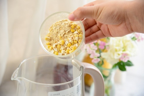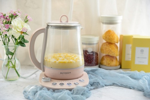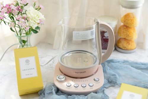 启动花果茶/水果茶/煮茶模式(打开盖子,以免溢壶),水滚后再次搅拌均匀,以免糊底。