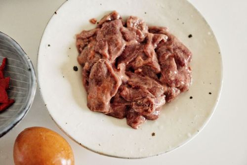 猪肝切成薄片,加入适量淀粉、少许盐等调味品腌一下;将枸杞子洗干净备用。