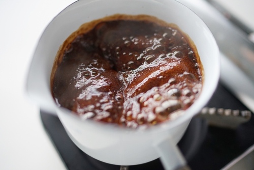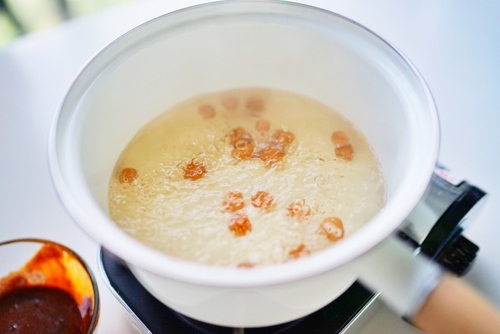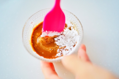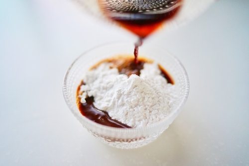 熬好的黑糖浆取25g加入35ml水,加入80g木薯粉中。
