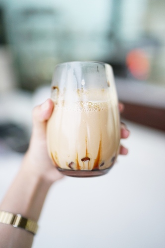 再倒入冲泡好的奶香小茶红(不要加糖哦)。