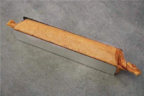 拌匀的面团本身已经是不太粘手的状态, 用油纸包好并直接整形成长条;冷藏至少4小时,要储存过夜的话就冷冻;