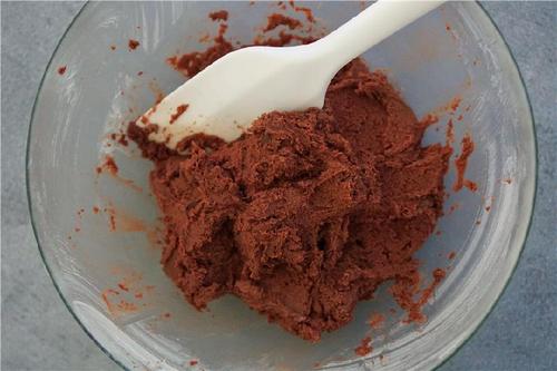 事先将可可粉与面粉混合均匀,再筛入黄油霜中,切拌均匀;