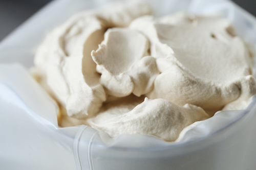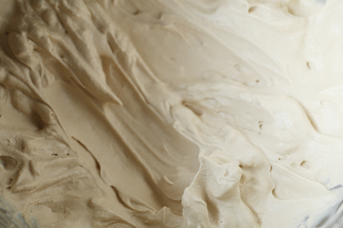 将鸡蛋液分8~10次加进黄油中,每加一次都要充分打匀吸收再加下一次;