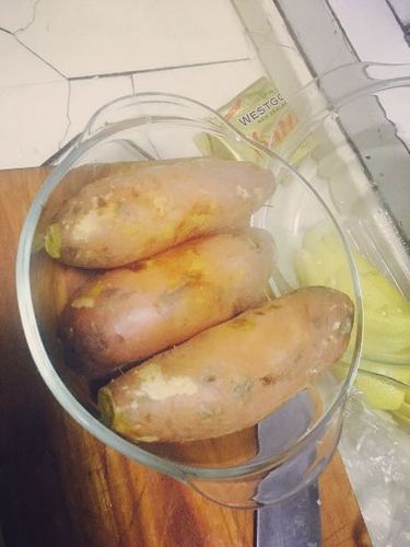 红薯洗净放容器。上微波炉中火叮15分钟。