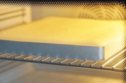 放入烤箱中上层,180℃上下火14分钟;烘烤时注意观察蛋糕表面上色情况;如果是用完整分量做蛋糕卷的话,烤时需要适当的增加2-3分钟,要注意保持观察,以上色程度为最终的判断标准哦;