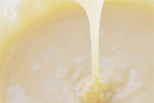 低粉过筛两次加入油奶混合物中,画Z字拌均匀,面糊细滑,没有颗粒;