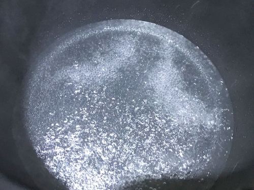 先把grappa倒进小奶锅,加热让酒精大部分蒸发掉。我买的这个酒是50度,所以正好蒸发掉一半的量。如果酒精含量不同则需要调整一下哈。酒精蒸发时锅底会有一层细密的小泡,蒸发完以后就变成正常水沸腾的气泡,很好分辨。蒸发掉酒精的grappa还是保留着完整的葡萄干香味。