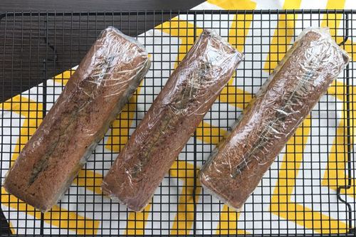 出炉后留在模具里冷却10分钟之后再脱模,用保鲜膜包紧。这样冷却之后蛋糕体不会干,还是有湿润感。建议放两天再吃,让味道更融合一点。