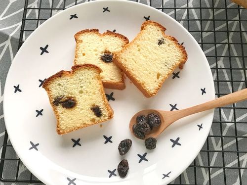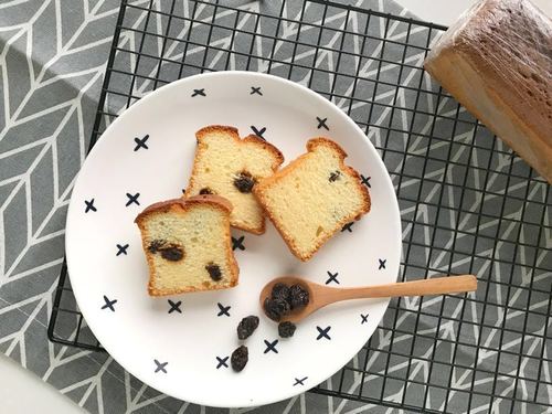 切开长这样!很湿润软绵,葡萄干的甜加上一点让人微醺的酒香,很像小时候吃的那种老式的果子蛋糕,有种怀旧的好吃~