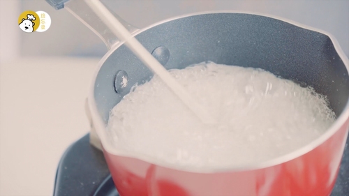 糖浆煮至118-120℃后离火,加入沥干水分的吉利丁片,搅拌融化后立刻将糖浆缓缓倒入高速打发的蛋白霜中;