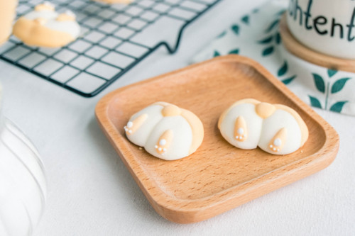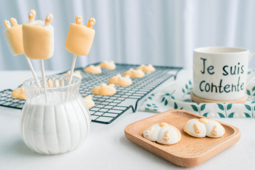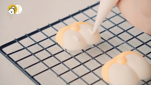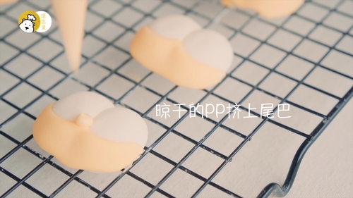 再晾1小时至全部糖霜干透;最后将柯基jiojio用白色糖霜粘到屁屁上就好啦!