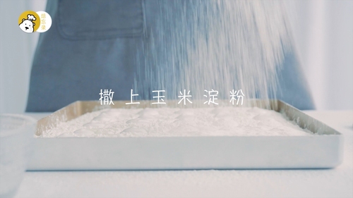 将第1步剩余的淀粉控制在20cm左右的高度均匀的筛下去,把每个棉花糖完全盖满,放置阴凉干燥处静置2-3小时晾干;湿度大的天气需要晾隔夜才行;