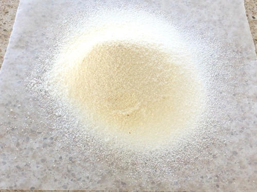 蛋白称量在搅拌缸中,干燥蛋白粉和细砂糖拌匀之后,倒进蛋白里稍稍搅散;砂糖先加进蛋白里再打发能得到更绵细扎实的蛋白霜;