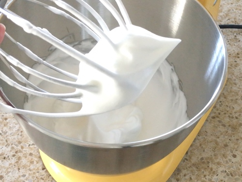 蛋白打发至硬性发泡状态;打发好之后170℃预热烤箱;