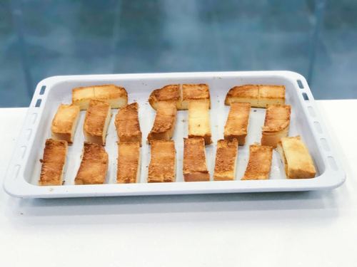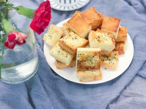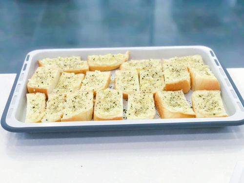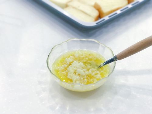 *喜欢蒜香浓的可以多放点,黄油的量比较随意,面包多一点就多融化一些。