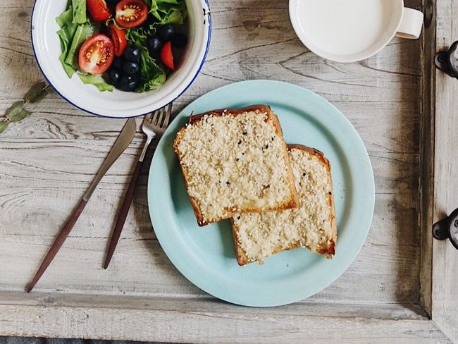 蜂蜜西多士:蜂蜜和黄油,盐少许