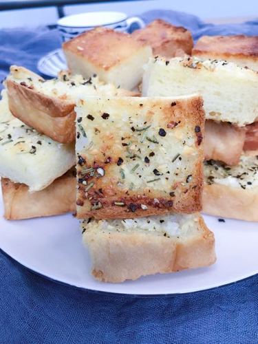 蒜蓉面包片:蒜蓉适量 黄油适量 盐少许 黑胡椒碎少许 迷迭香少许
