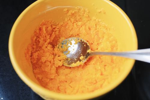 取21g混合好的馅料,用手攥紧成团。再换一只手换方向攥紧。重复这个动作,大概攥10次,馅料就会变成一个紧实的小球。