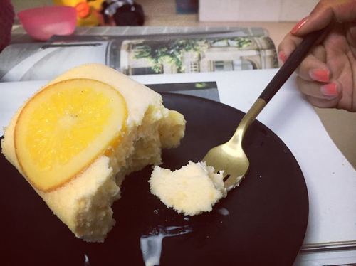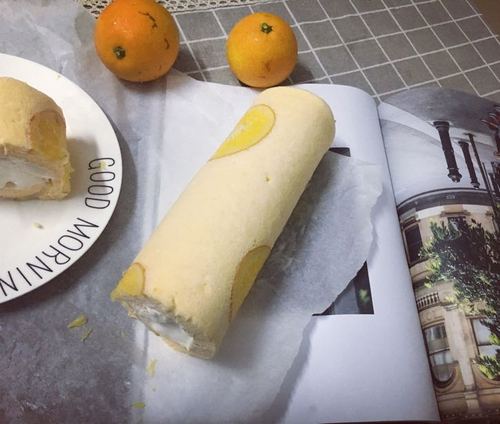 蛋黄和油还有牛奶搅拌均匀 加入香橙糖水 不喜欢太甜的 可以加一点点盐 ,过筛面粉 搅拌蛋黄糊 开始打蛋白 蛋白方法参照焙忘录 省略这一步 都没拍照 这个方子是网上找的 改良过的 所以第一次做有点手忙脚乱 但其实和我们焙忘君做的超厚哒蛋糕卷做法差不多 就是配方不一样