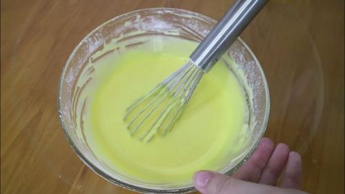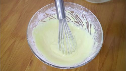 在混合均匀的面糊里加入百香果汁
