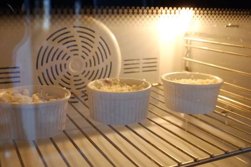 倒入烤碗一半位置,铺上一层芝士碎,在铺满土豆泥,表面再次铺满芝士碎,放入烤箱,10-20分钟,上色即可