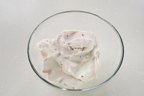 淡奶油+15g果酱,打发至8分或9分,再混拌入剩余5g果酱,让奶油中能夹杂着一些大颗粒的果酱;