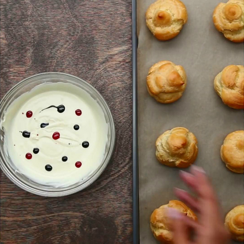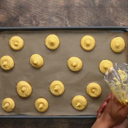 1、挤泡芙面糊时,需保持一定间隔,泡芙烘烤时会有所膨胀;