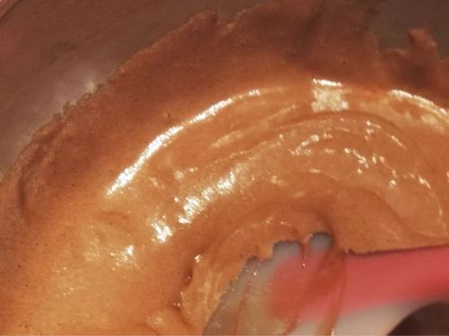 蛋黄,糖打发到体积变大,加入步骤一的巧克力油中,拌匀,再加入水和朗姆酒,混匀后筛入低粉,画z字搅匀。
