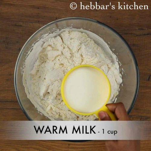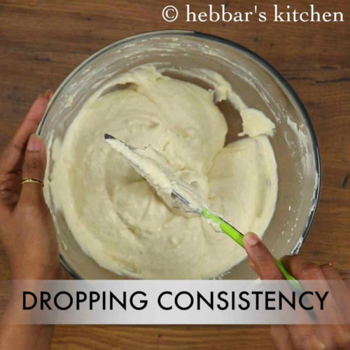 加入温牛奶,继续切拌,提起面糊,可以看到面糊很顺滑;