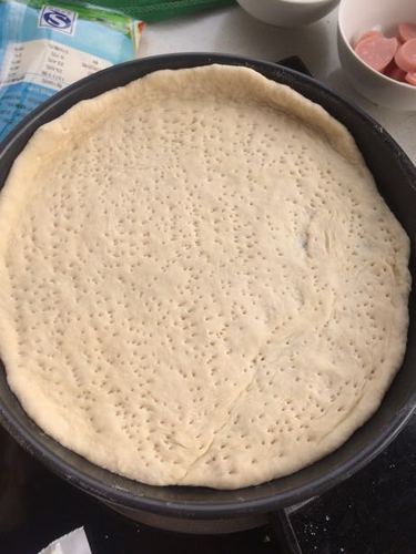 饼底,270g面包粉,3g酵母,3g盐,10g糖,140ml水,27g黄油,少许蛋液。