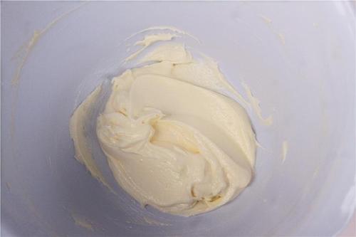 奶油奶酪放小盆里隔水加热软化(是软化不是融化喔),加入细砂糖搅拌至砂糖完全融化;