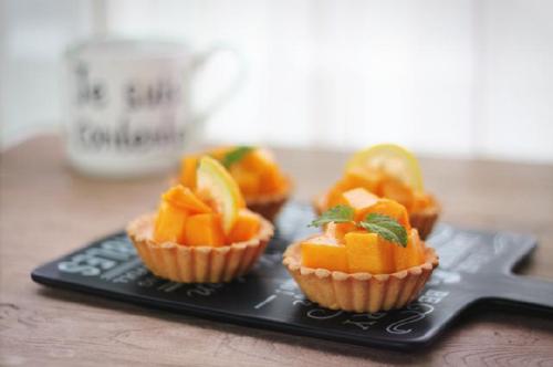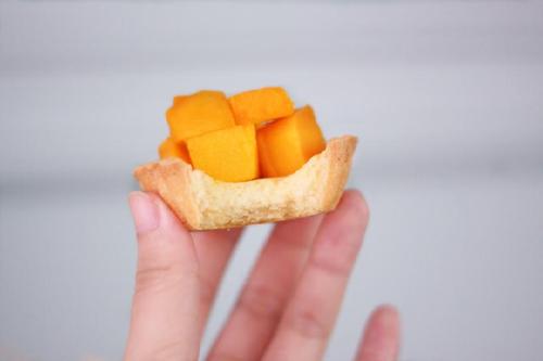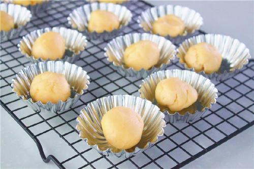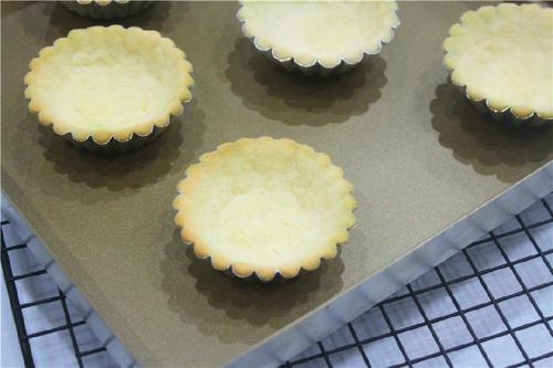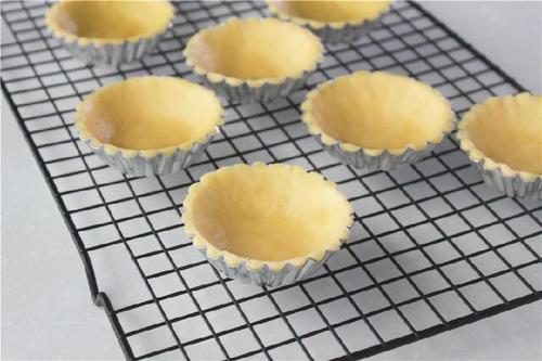 将挞皮放入烤箱中层,温度调整为上下火170℃,烘烤10-13分钟,至边缘上色;这一步是预烤,不要把挞皮直接烤熟哦;