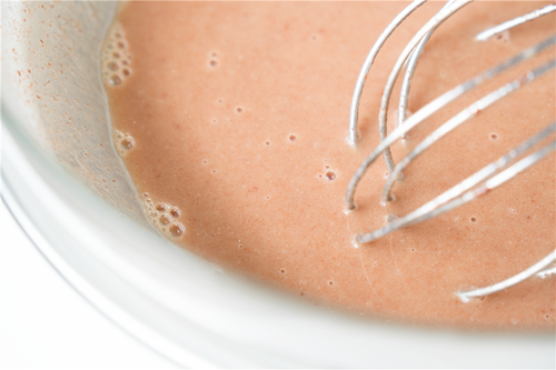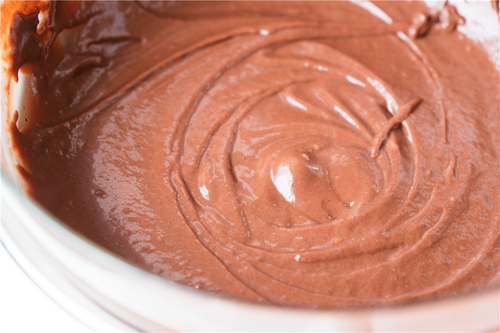将混合好的粉类加入蛋黄液中,Z字形拌匀成巧克力面糊;