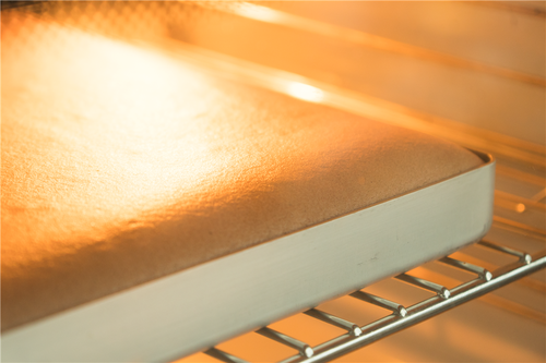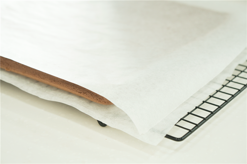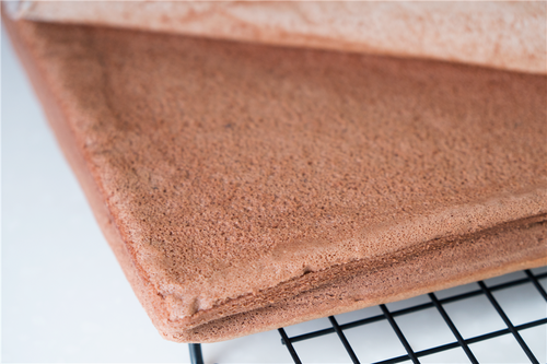 取出后再次震一次,磕出热气;蛋糕体从金盘四周分离后,隔着油纸倒扣在晾网上放凉,表面记得也要盖油纸哦;